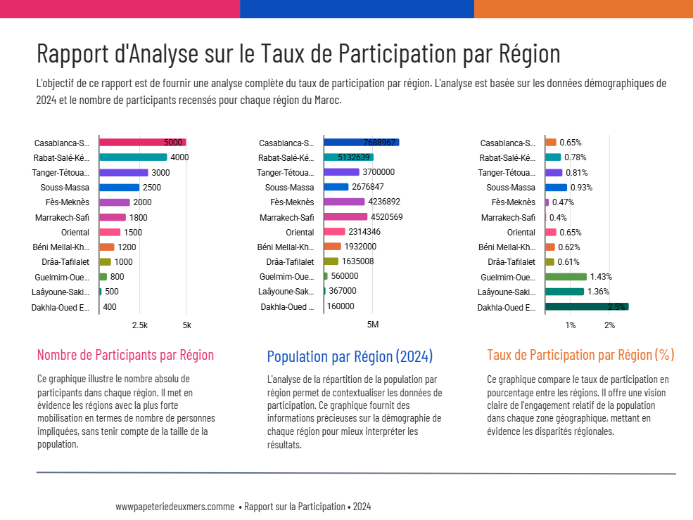 | Région | Population (2024) | Nombre de participants | Taux de participation (%) |