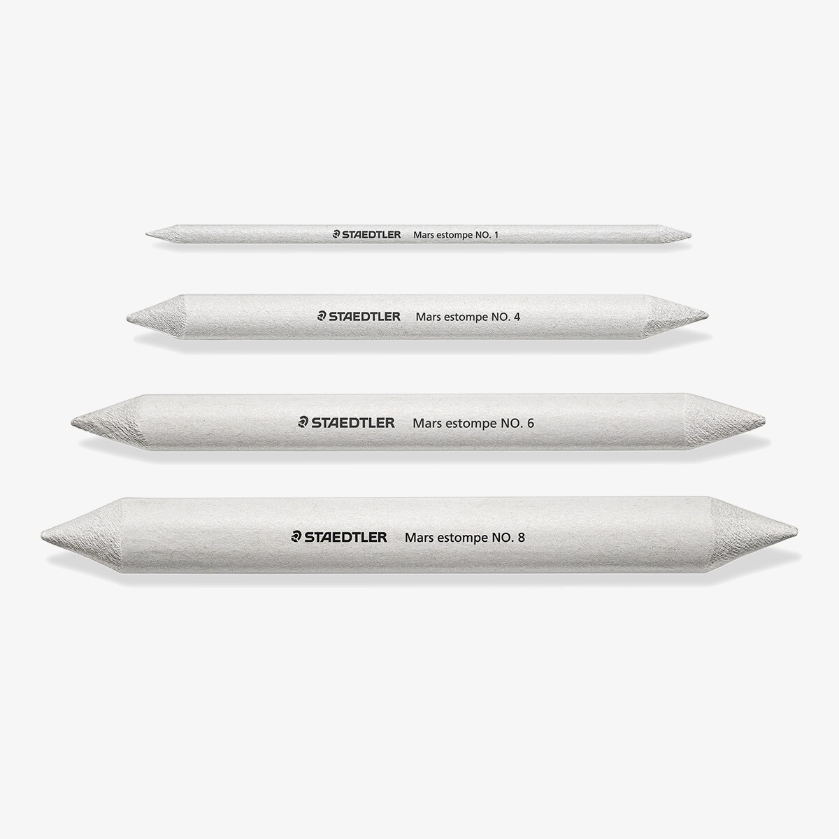 • Quatre estompes en papier pour la plupart des instruments de dessin tels que le fusain, le crayon graphite, la craie ou le pastel